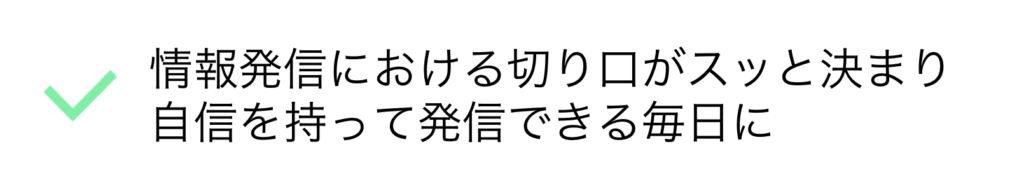 何を・誰に・どう伝えていくか?を整理し、今後も迷わずに続けられる発信軸を定めます。『発信すべき3つの軸』『伝えると信頼が積み上がるテーマ』『発信しない方がいいテーマ』などを明確化します。